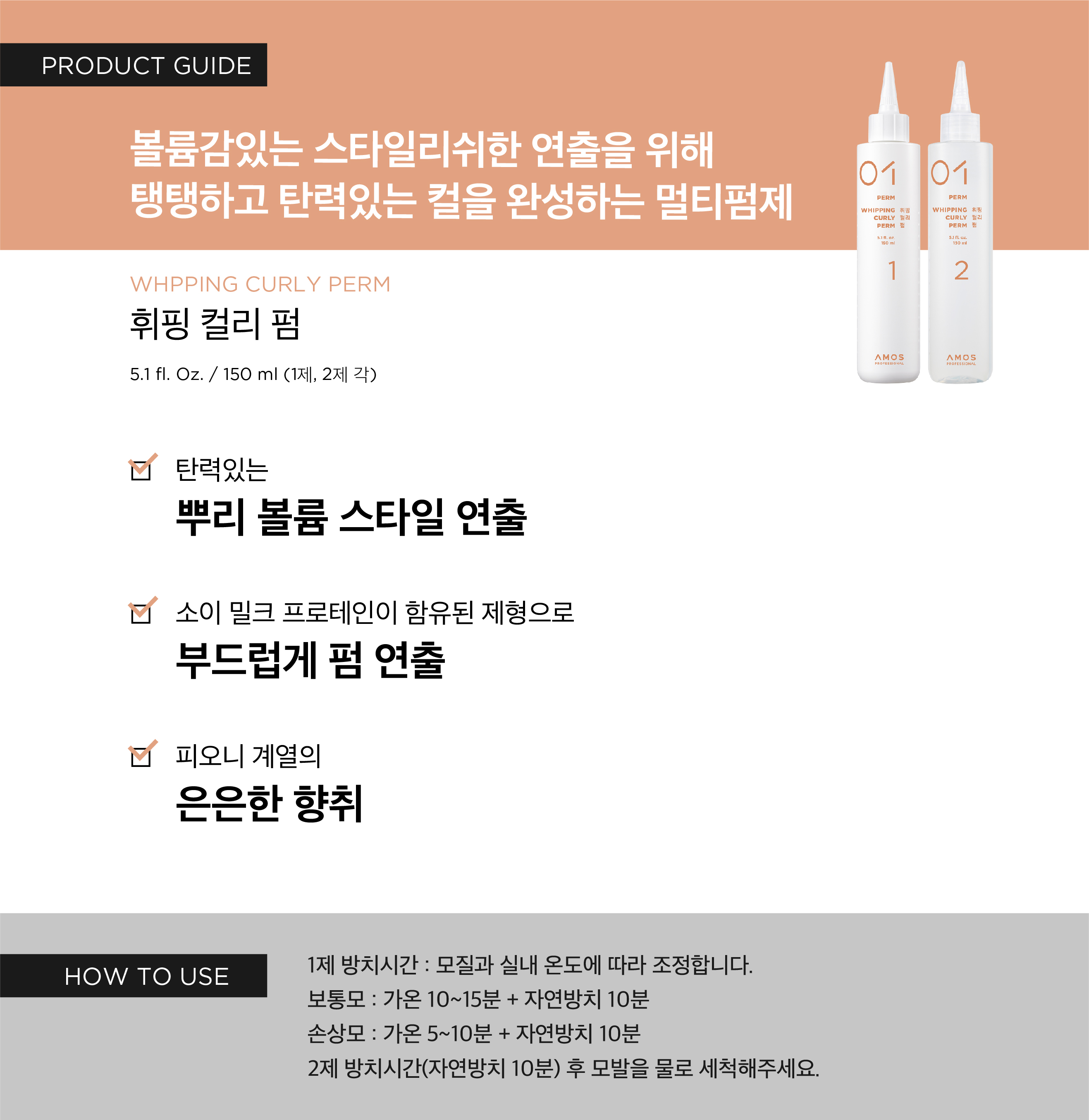 - 볼륨감 있는 스타일리쉬한 연출을 위해 탱탱하고 탄력있는 컬을 완성하는 멀티펌제